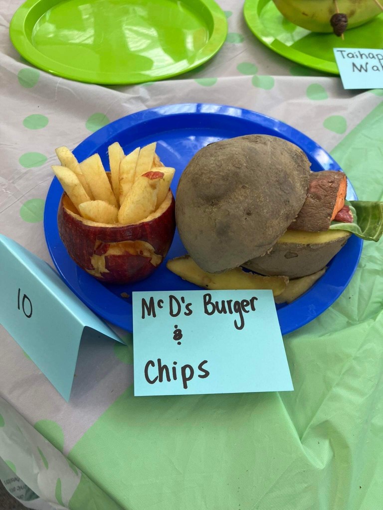 The vege / fruit creations were my personal favourite where we had ‘If a Penguin got Botox’, McD’s Burger and Fries, Taihape Waka, Barny the Dolphin, Olly the Octopus, a frightening zombie, a halloween pumpkin, a snowman and sauce and chips.