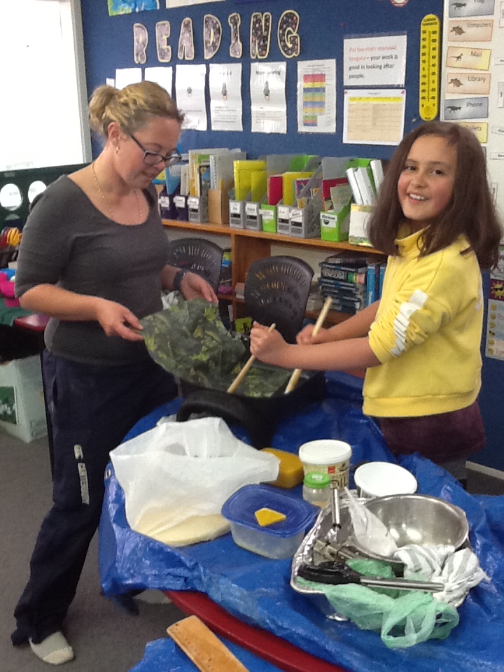 Tuesday afternoon Kylie (Rickon’s mum) came to teach us how to make beautiful bees wax wraps (a substitute for plastic wrap to put around our lunches). It was fun and it smelt like honey. When Kylie came she had a heap of extra fabric and might come back so we can make some more.