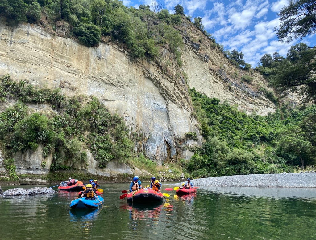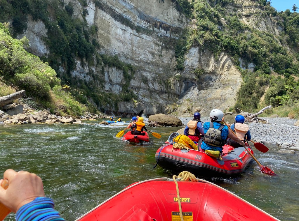 We started early in the morning. One by one pupils started arriving at River Valley Lodge. When everyone had arrived my mum/one of the guides started to tell us what was happening. After that we got into our river gear, and set off to the boats where Max gave us a safety briefing. Then we were off! A few hours after we had left it was time for lunch! After lunch most of us went and jumped off the jumping rock right on the other side of the river. Then we were back to work, on the rapids! After another few hours we were at our destination, at camp! Once all the gear was unloaded at the camp and all the tents were up, we could go for a swim in the eddy. Then we did some tracking stuff with Sarah from horizons. Before we knew it, it was time for burgers for dinner and cheesecake for dessert. Then off to bed. During the night no one had a good sleep because the wind was so loud. In the morning everyone was up by 8:30 am, breakfast was bacon and eggs! Then we were straight into our river gear. Once all the gear was back in the boats we hopped back in the river and set off to Tarata. Once we arrived we got dressed into warm dry clothes, and started walking up the hill. When everyone was there we had lunch and it was good. Then we drove back to the lodge and that was our 2020 raft trip! Isla