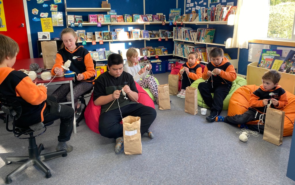 Here we are making peggy squares, using wool from the Sheep’s Back. Pukeokahu school loves the Sheep’s Back wool. We have been winding the shanks of wool into balls. We have made a lot of peggy squares from their wool. At the rate we are going we will have a lot of peggy squares by the end of this year. Once we have made enough we will make blankets for some lucky new born babies. The Sheep’s Back knitting kit is a great winter activity. We all enjoy sitting down and knitting.