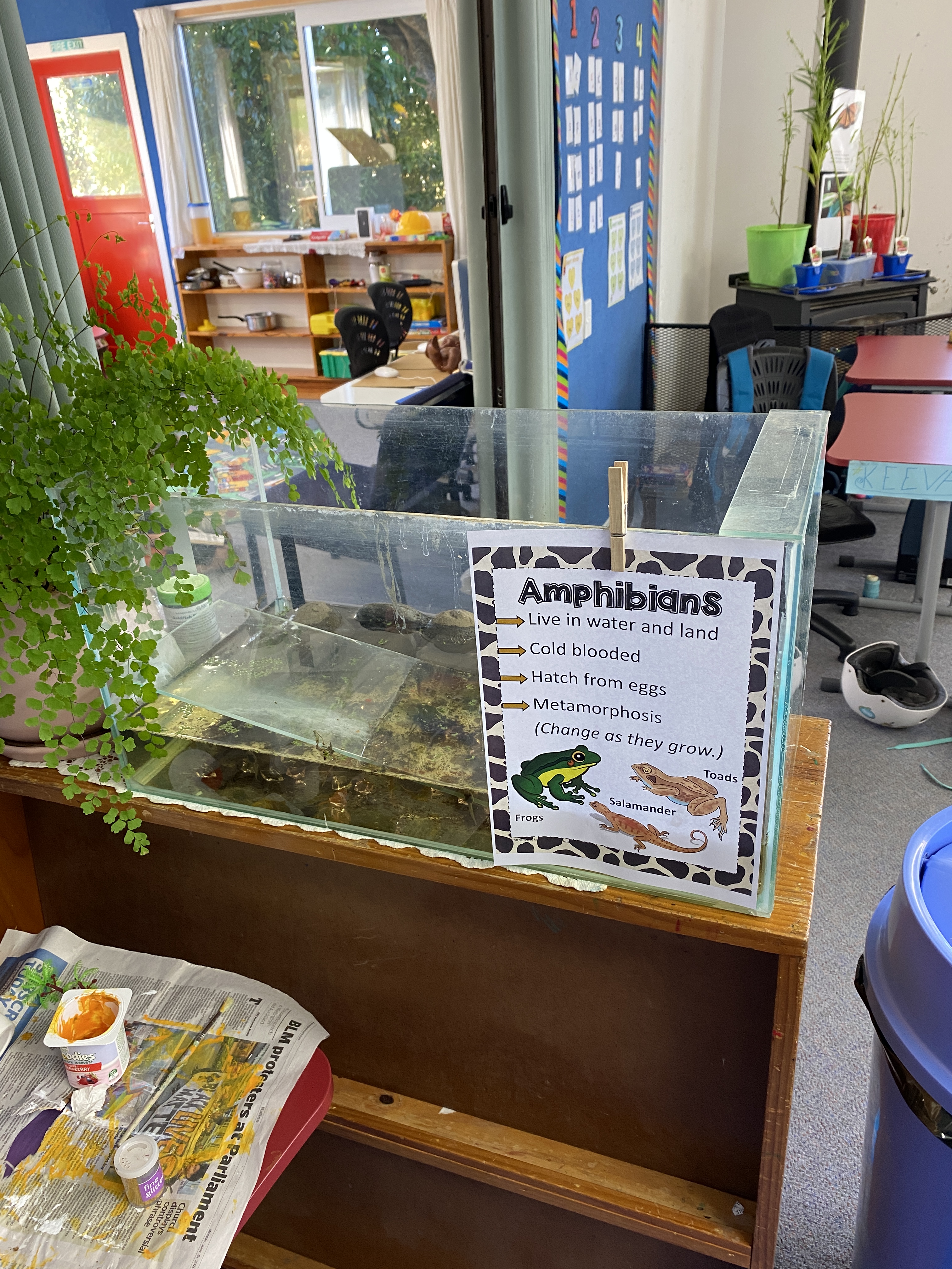 In the classroom we are caring for and learning about the life cycle of both frogs and monarch butterflies. It’s been exciting for us all (adults included) to watch the daily changes, especially the caterpillars who seem to grow before our eyes.