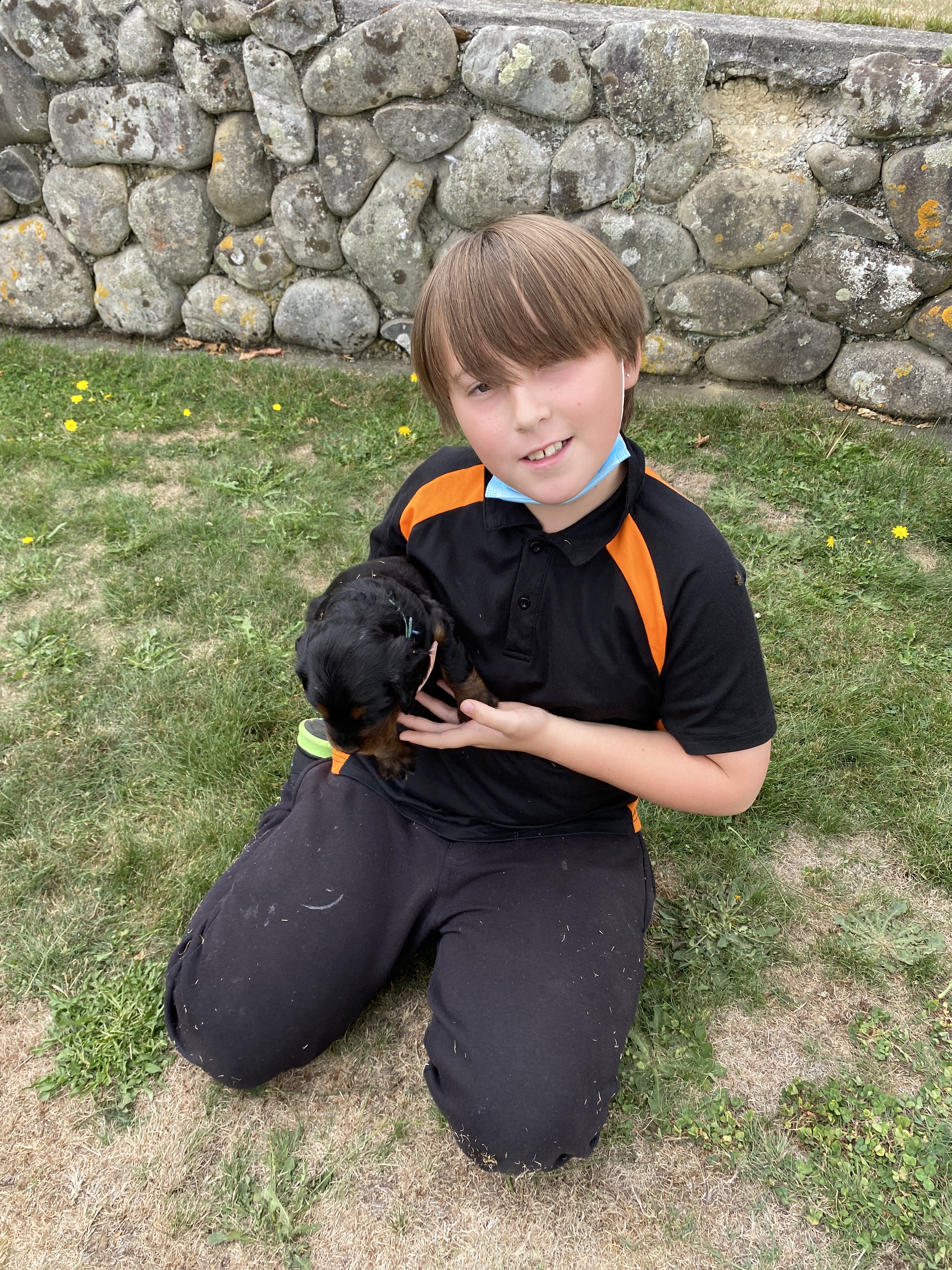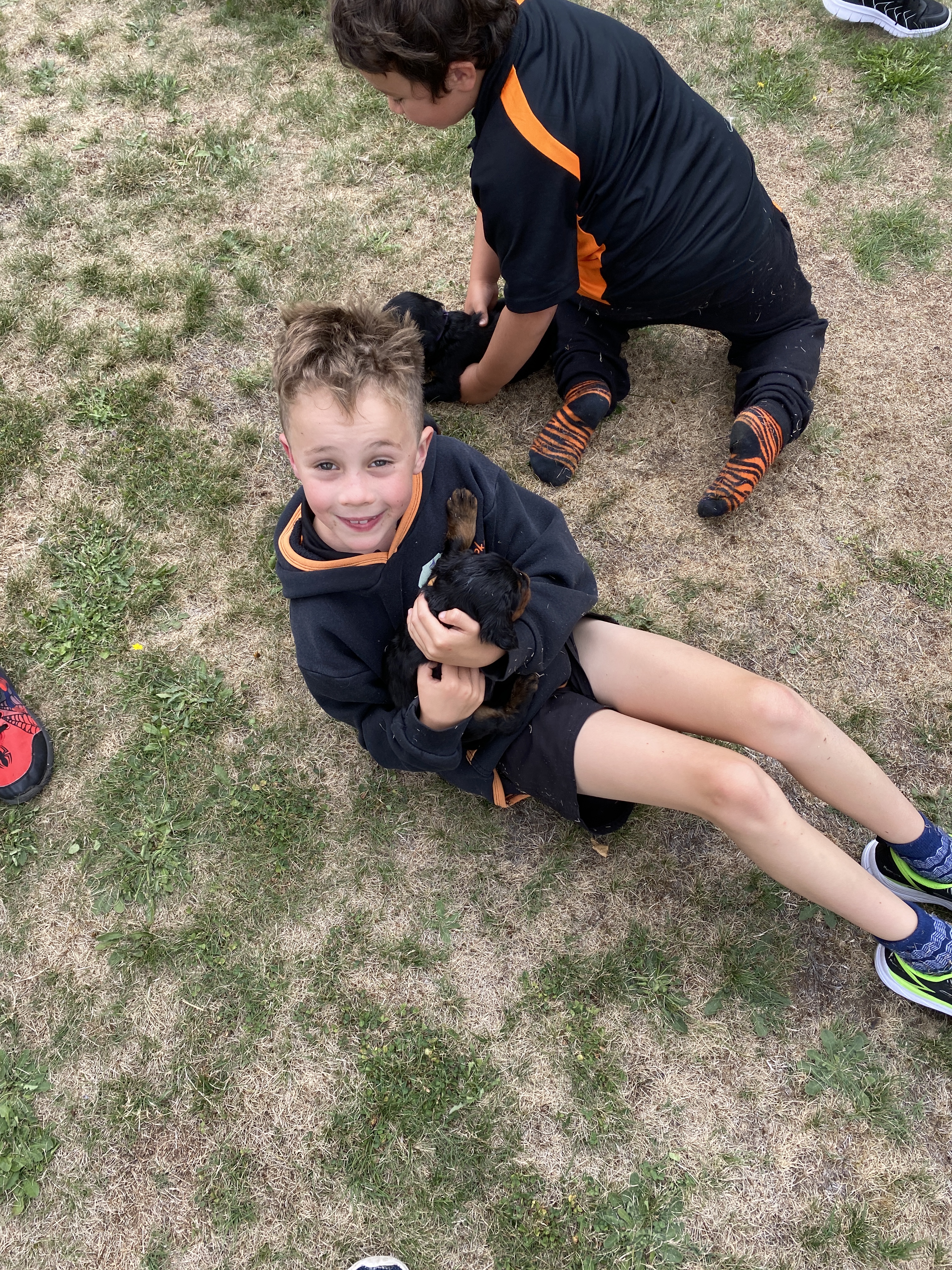Afterwards, because we’d been amazing bucket fillers all morning we got a little treat. We got to visit Mrs Whale and see her beautiful Gordon Setter puppies. We have a lovely time playing with them on the lawn.